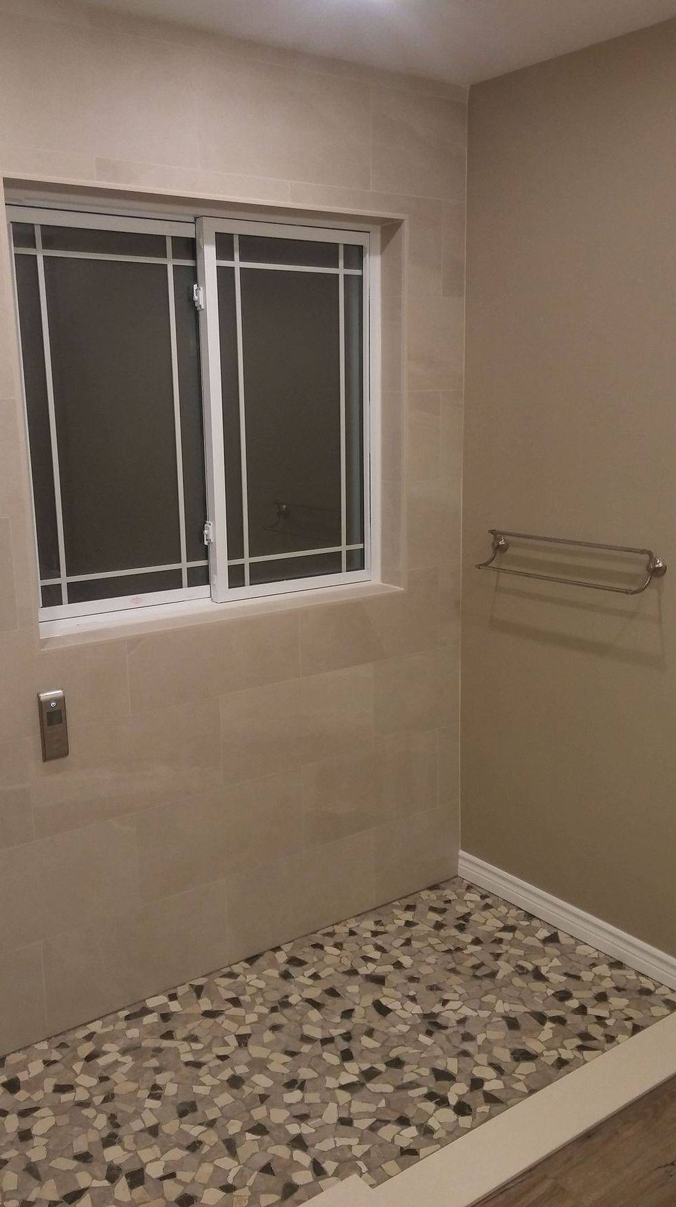 This BIG walk-in shower replaced a small shower and tub. The rain shower, 4 body jets and hand shower are all controlled by a digital shower valve.